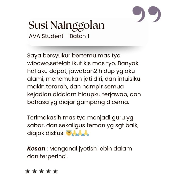 Beberapa testimonial alumni AVA Jyotisha Batch 1 & 2:
