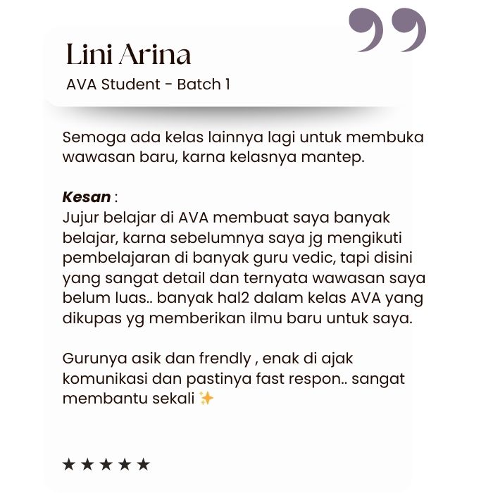 Beberapa testimonial alumni AVA Jyotisha Batch 1 & 2: